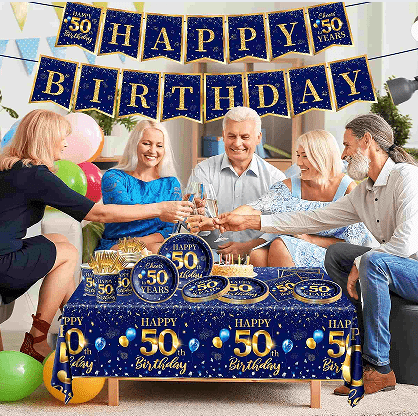 Decoración de vajilla con globos para el 50 cumpleaños.
