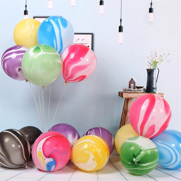 El globo de látex ágata producido por la fábrica de globos Niun® está hecho de látex de alta calidad, que es duradero y hermoso, no tiene un olor especial y es más seguro de usar, por lo que la familia y los amigos están más seguros de usar. El globo de látex es fácil de atar, puede mantener el estado inflado durante mucho tiempo y no es fácil de estallar. Este globo de látex ágata está disponible en 7 colores, que son de color mixto, negro, rojo, púrpura, azul, verde y amarillo, y los tamaños son de 10 pulgadas y 12 pulgadas. Producimos 100 piezas de globos de látex ágatas en una bolsa. Si tiene otros requisitos de cantidad, también podemos ajustar la cantidad de cada bolsa de globos ágados para usted. Los globos de látex de ágate de mármol son los globos más comunes y se pueden usar para muchas ocasiones decorativas para agregar una atmósfera alegre a su fiesta.