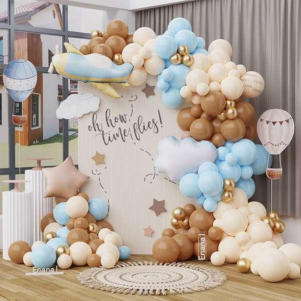 Guirnalda de globos con globo de aluminio de avión:Esta guirnalda de globos con globo de aluminio de avión está compuesta porglobos de latex, globos de aluminio, puntos de pegamento para globos, hilos de pescar y otros accesorios para globos. El uso de estos accesorios puede ayudarte a crear fácilmente un arco de globos. Nuestros globos de látex y globos de aluminio están hechos de caucho natural y materiales de papel de aluminio de alta calidad, que son seguros y no tóxicos y pueden crear un hermoso arco de guirnalda de globos. Esta guirnalda de globos de avión es adecuada para una variedad de escenas temáticas, incluidas fiestas de cumpleaños, fiestas temáticas de aviones, fiestas temáticas de el tiempo vuela y fiestas de bautizo de bebés. Es perfecto para añadir un toque de color a cualquier celebración.