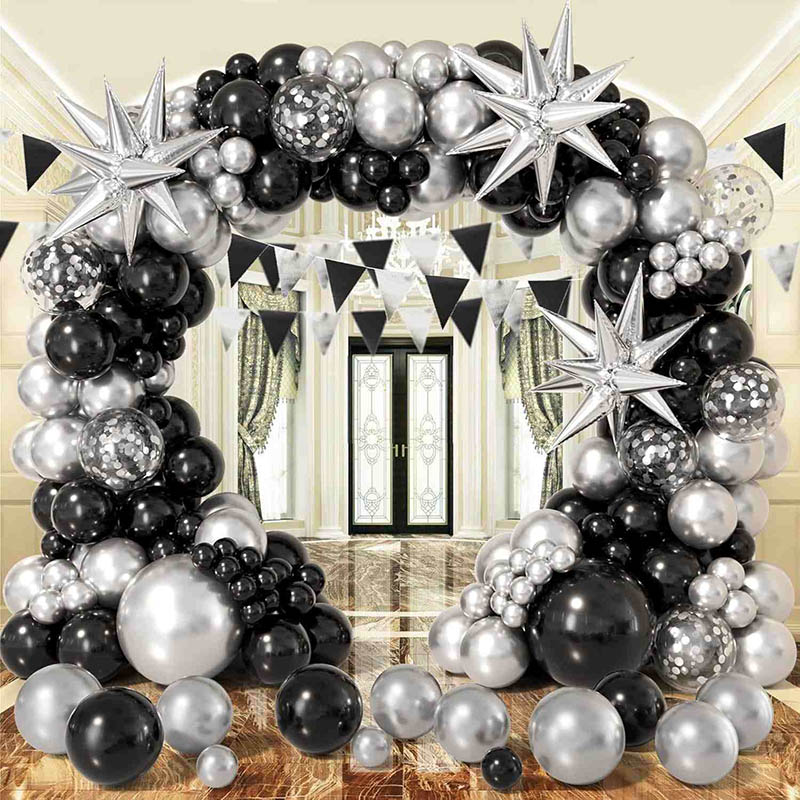 Si desea comprar kits de guirnaldas de globos negros y plateados con más precios de descuento.