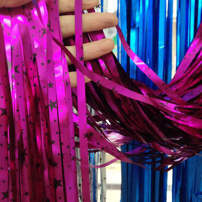 Foil Cortin es un tipo de suministros de fiesta decorativa, a menudo utilizados en todo tipo de actividades de celebración del diseño del fondo. La siguiente es su descripción del producto
