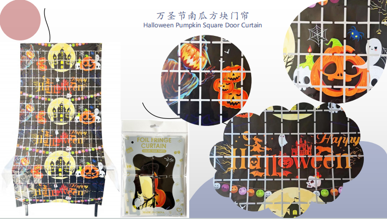 Como la cortina de aluminio verde y rojo con temas de Navidad, cortina de aluminio negro y naranja con temática de Halloween, y cortina de aluminio con calabazas, murciélagos, arañas y otras formas, que se pueden utilizar para la decoración de vacaciones en hogares, centros comerciales, bares y otros lugares.