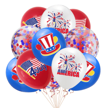 El juego también incluye globos con forma de estrella, de amor, de bandera y otros globos con formas especiales. La combinación de círculos clásicos y globos creativos con formas especiales satisface diversas necesidades de decoración y crea fácilmente escenas decorativas únicas para el día de la independencia.