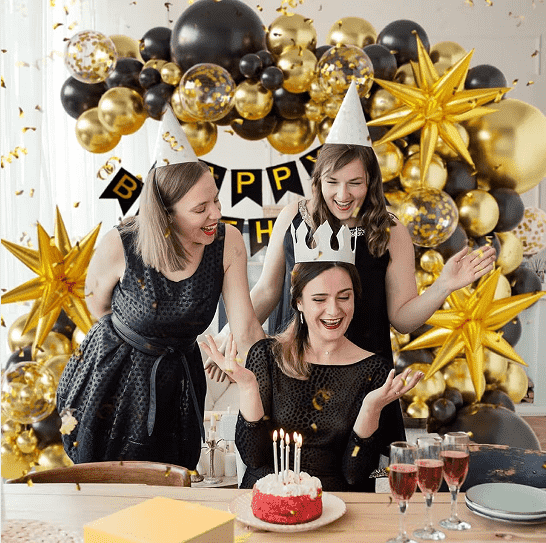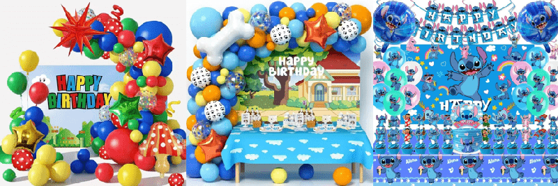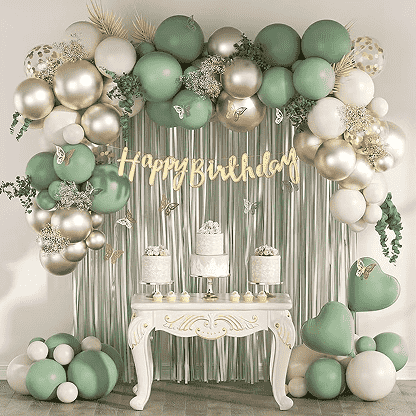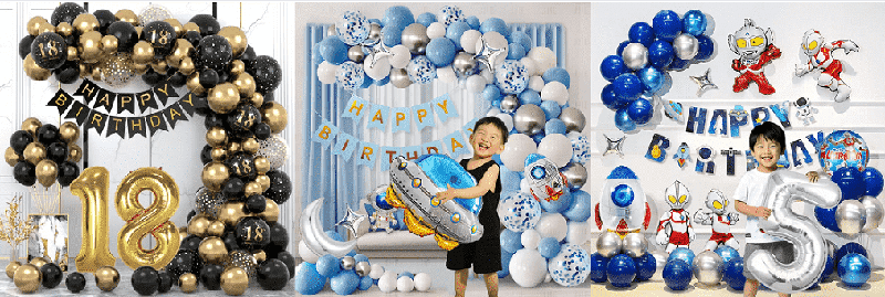 El estilo básico es un globo de látex Happy Birthday del mismo color o complementario, conGlobos de aluminio con letras de feliz cumpleaños.oglobos de aluminio con números. Los estilos clásicos tienen un globo de gel en polvo Macaroon, un globo de aluminio rosa de feliz cumpleaños, un globo de látex negro, un globo de aluminio con números dorados. Los globos de látex se pueden ensartar en una cadena de globos y colgar en la pared o el techo, con globos de aluminio como centro visual y una pequeña cantidad de adorno de cinta para crear rápidamente una atmósfera de fiesta simple y texturizada.