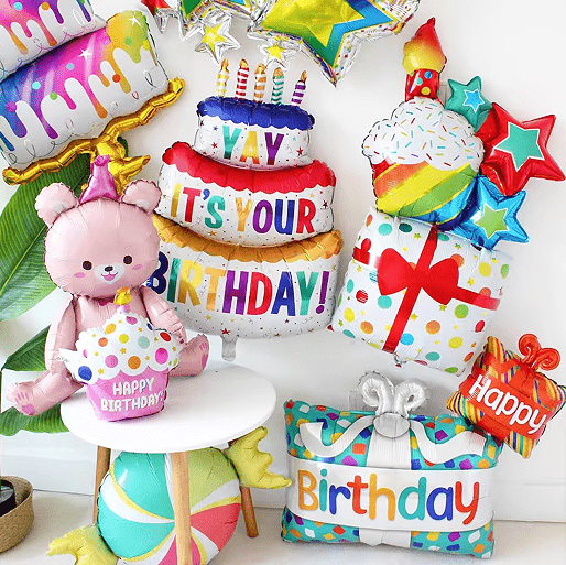 El globo de papel de feliz cumpleaños tiene un impacto visual más fuerte y una sensación de alto nivel, el producto está hecho de material de papel de aluminio de alto brillo, la superficie presenta una textura metálica, un buen efecto reflectante, brilla bajo la luz y puede convertirse en el centro de atención de la fiesta. Los modelos clásicos son el juego completo de globos con letras Happy Birthday y globos con números Happy Birthday como "18", "30" y "60". Los modelos de modelado incluyen pasteles, amor, estrellas, personajes de dibujos animados, animales, etc., que son adecuados para diferentes necesidades temáticas de niños y adultos.