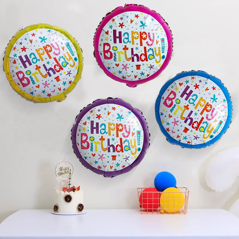 Nuestros globos de aluminio para fiesta de feliz cumpleaños incluyen principalmente globos de aluminio redondos para fiesta de feliz cumpleaños en inglés y español y globos de aluminio para fiesta de feliz cumpleaños con formas irregulares. Los globos de aluminio redondos miden principalmente 18 pulgadas y vienen en una variedad de estilos. Están impresos con tinta importada respetuosa con el medio ambiente y asegurados mediante un proceso de estampado en caliente a alta temperatura. Se pueden inflar con aire o helio y están equipados con una válvula de empuje para cerrar. Ofrecemos 50 unidades por paquete de pedidos al por mayor de globos de aluminio para fiesta de feliz cumpleaños. y empaquetados individualmente con tarjetas de papel. Hay tarjetas de papel personalizadas disponibles para empaques individuales de globos de aluminio. Nuestra línea de productos incluye bolsas OPP, tarjetas de papel, globos de aluminio, pajitas y cintas.