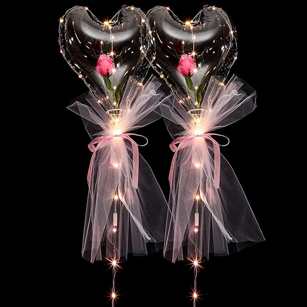 Este juego de rosas con globos bobo en forma de corazón producido por nosotros contiene un globo ondulado en forma de corazón, una rosa artificial, una lámpara LED, un poste de luz, una cinta y una gasa. Este juego de rosas con forma de globo bobo en forma de corazón tiene una variedad de rosas artificiales para elegir. Lo hemos combinado con cintas e hilos de colores correspondientes. El tamaño de este globo bobo en forma de corazón es de 7-8 cm, lo que le permite llenar flores sin utilizar un expansor de globos ni una máquina llenadora de globos. Estos globos de plástico transparente son muy adecuados para diversas ocasiones, como bodas, ceremonias de compromiso, celebraciones de graduación, fiestas de cumpleaños y diversos eventos, que pueden agregar fácilmente un toque de elegancia a sus actividades.