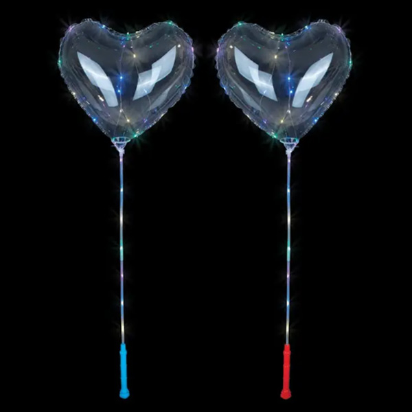 Para este juego de rosas con globos bobo en forma de corazón, también tenemos un poste de remolque para globos bobo y una caja de luz. La barra de remolque del globo consta de una varilla de 35 cm, una copa para el globo y un pequeño tubo de plástico. La luz LED funciona con 2 pilas AA, las pilas no están incluidas en el volumen de entrega. La caja de luz se divide en luces LED amarillas y luces LED de colores. Las 3 configuraciones de parpadeo de LED le permiten configurar un parpadeo rápido, un parpadeo lento y sin parpadeo. Cambia la configuración del globo para obtener maravillosos efectos multigrupo.