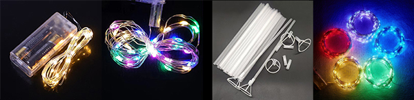 Tiras de luz LED, tubo de plástico, copa de globo, pluma. |