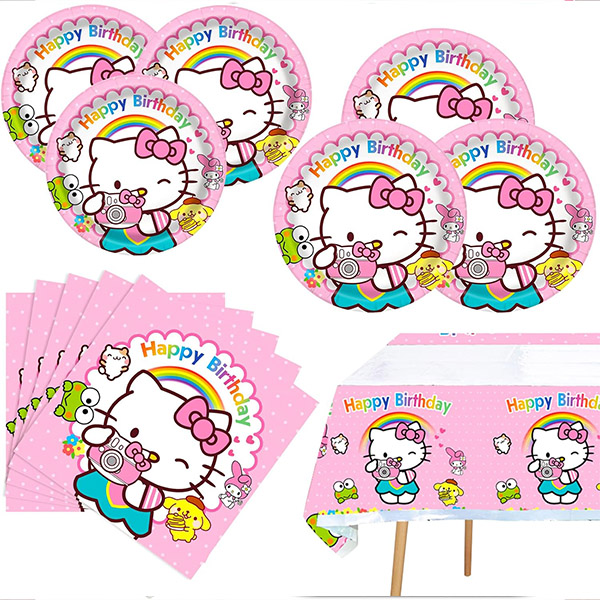 3) Vajilla: La vajilla de Hello Kitty aún se puede combinar con los diseños exclusivos del juego de artículos de fiesta en rosa y blanco para crear un ambiente lindo para tu fiesta. Todos los productos son muy duraderos, de colores brillantes y tienen una sensación de alta calidad.