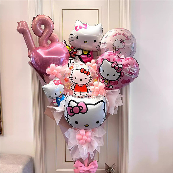 Hello kitty es un simpático personaje de dibujos animados de gatos que ha recorrido todo el mundo. El globo de aluminio con temática de Hello Kitty fabricado en China está hecho de material de aluminio de alta calidad, que tiene un buen rendimiento de sellado y no es fácil de filtrar. Este globo de aluminio tiene más de 30 estilos para elegir, incluidos globos de aluminio redondos y globos de aluminio de personajes de dibujos animados tridimensionales. La combinación de dos globos de aluminio con temática de Hello Kitty puede satisfacer las necesidades de diferentes ocasiones. Por ejemplo, para reuniones familiares, fiestas de cumpleaños, eventos corporativos u otras ocasiones de celebración, estos globos de aluminio pueden agregar una atmósfera alegre a su evento.