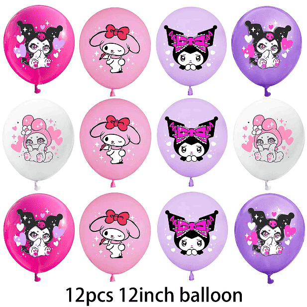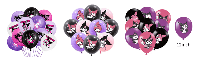 1. Globo de fiesta de Kuromi personalizado: proporcione personalización de globos de aluminio (patrón y forma), impresión de globo de látex y diseño de estilo de globo y corona.