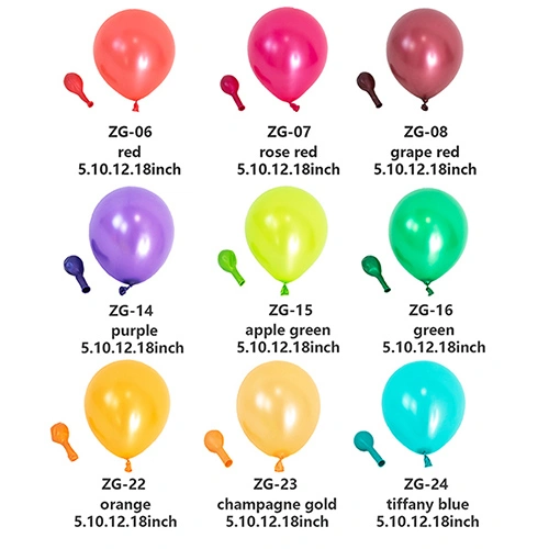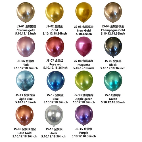 Globos metálicos:Con un acabado de espejo de alto brillo y texturas y colores llamativos, estos son los globos de látex más versátiles para usar en decoraciones de fiestas, impresión personalizada y más.