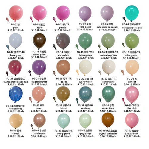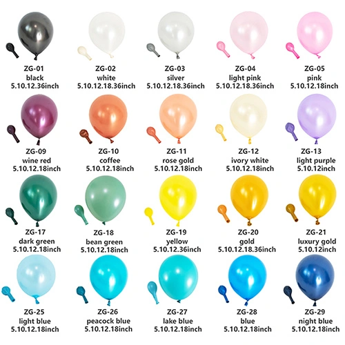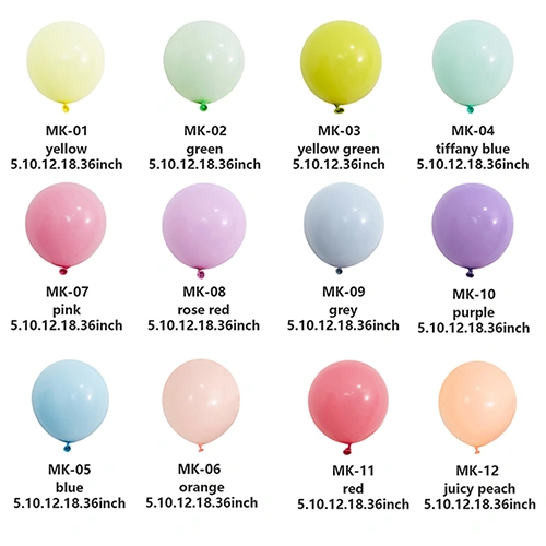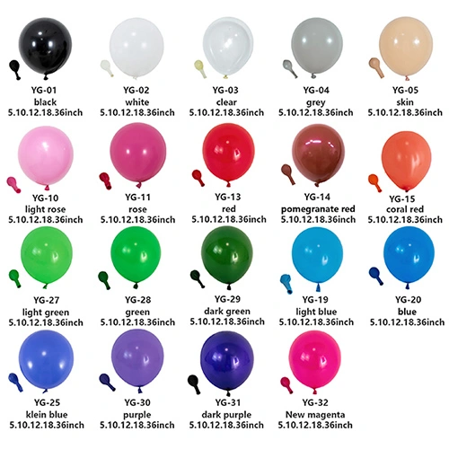 Los globos de látex son elementos decorativos y de entretenimiento muy utilizados. Estos globos son muy populares en diversas ocasiones por sus diferentes colores y métodos de uso. Desde rojo mate, amarillo, azul y verde hasta rosa y morado retro, y luego hasta tonos metálicos como el dorado y el rosa, los globos de alta calidad pueden crear efectos visuales sorprendentes y satisfacer las necesidades de diversos escenarios.