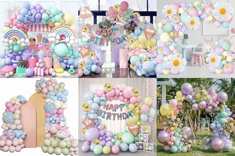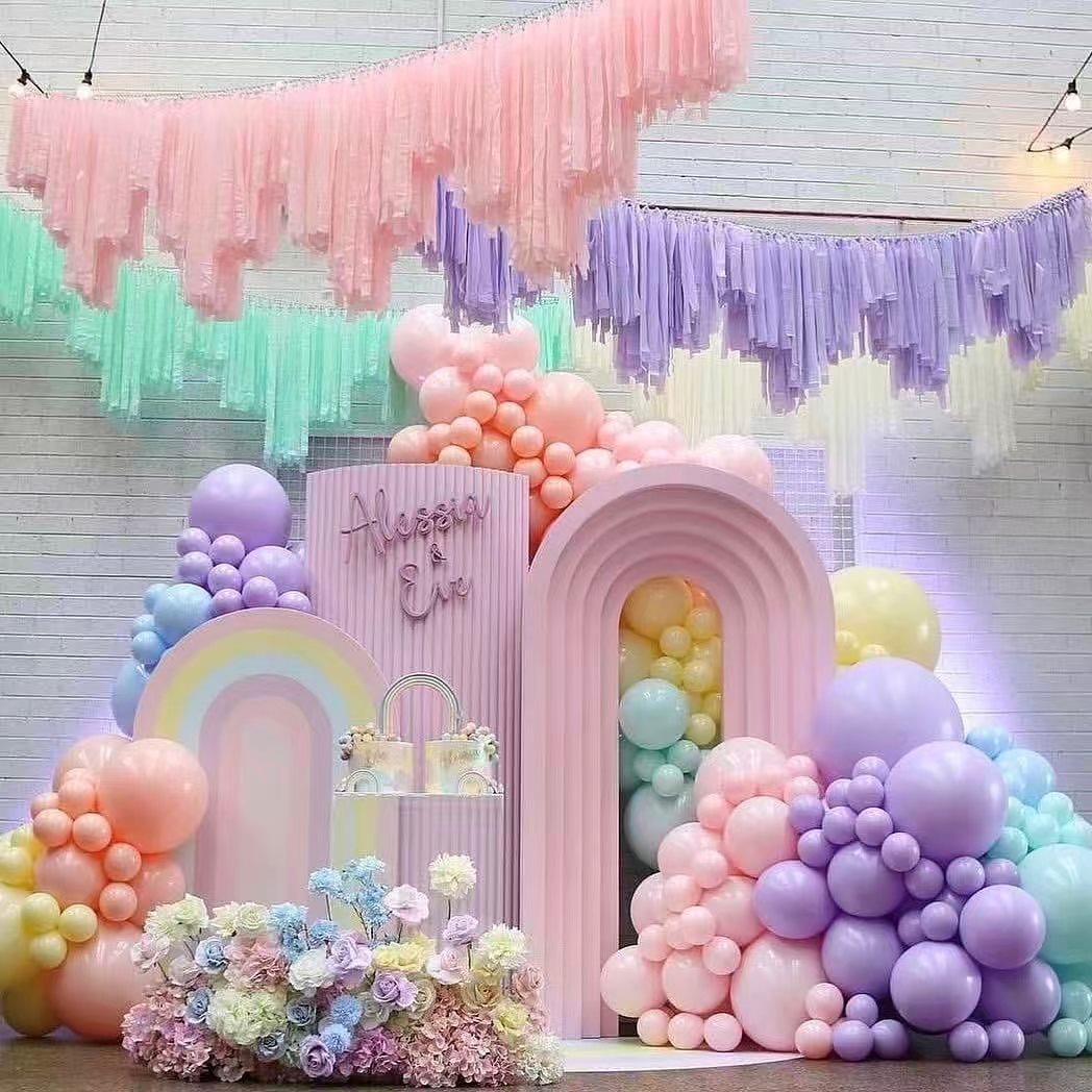Para fiestas privadas o grandes eventos, el arco de guirnaldas de globos macarrones puede agregar capas y sensación artística. Hacen que las celebraciones sean más especiales y memorables.