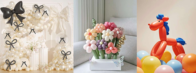 El uso es amplio. Es común en las fiestas de cumpleaños de los niños, eventos navideños, actividades temáticas o configuraciones de centros comerciales. Los colores son brillantes. Las muchas formas de igualar lo hacen llamativo. El lugar se ve ligero. El estado de ánimo se siente feliz y especial.