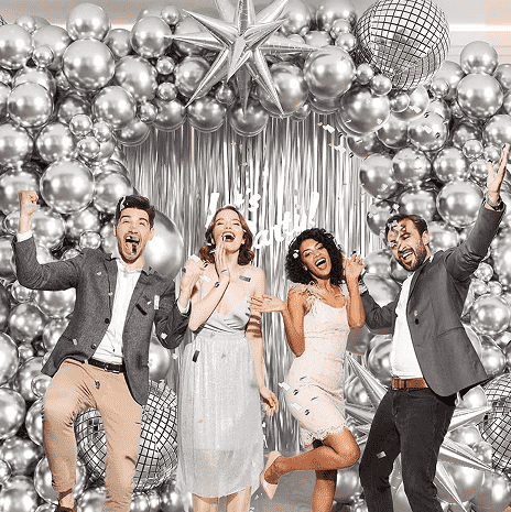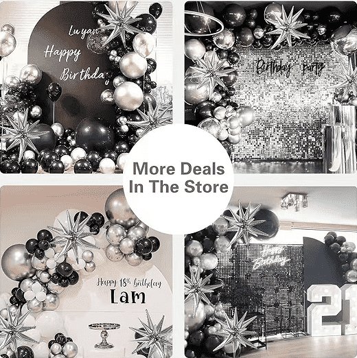 2. Color: Ofrecemos una variedad de colores de metal, una variedad de tamaños de globos de látex, admitimos monocromo, mezcla y combinación o combinación de colores degradados, como oro negro, plata negra y plata azul, etc., también se pueden personalizar según el tema del evento.