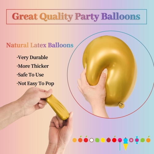Tamaño: el tamaño de los globos de látex metálicos es de 5, 10, 12, 18 y 36 pulgadas.