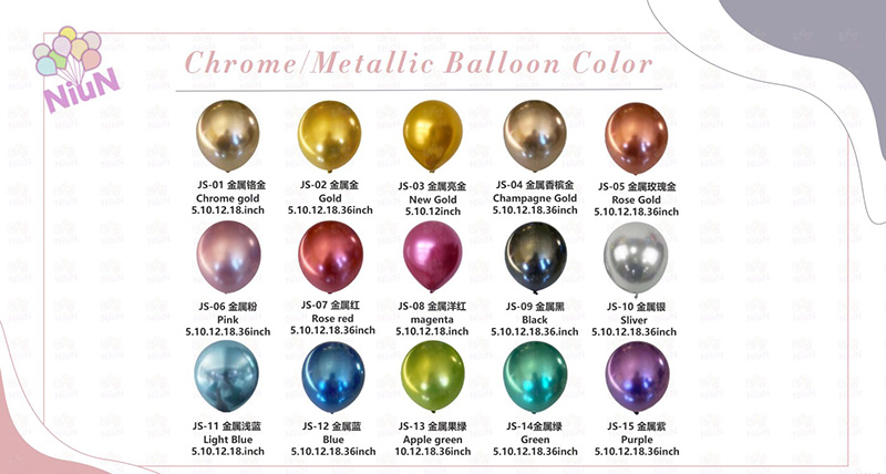 Los juegos pequeños de globos de colores metálicos de alta calidad utilizan látex espesado y muy elástico. Tienen una superficie brillante similar a un espejo. La luz se refleja en ellos. Crea un efecto metálico rico y brillante. Los globos de látex normales parecen planos y mate. Estos globos se sienten de alta gama. También llaman la atención de inmediato.