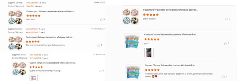 Puedes elegir un solo color metálico para el paquete. Las opciones populares son el dorado champán, el verde metálico, el oro rosa, etc. Hace que tu escena se sienta simple y organizada. Se estira muy bien. Casi nunca explota. Permanece lleno durante más de 12 horas después del inflado. También puedes mezclar diferentes tonos metálicos. Pruebe el oro y la plata juntos. Esto crea una decoración llamativa en capas. Combina estos globos con globos de látex de confeti también. El suave brillo de los globos metálicos contrasta con la textura brillante de los de confeti. El confeti se mueve dentro cuando los agitas. Esto agrega diversión y movimiento a cualquier espacio. Los juegos pequeños de globos de colores metálicos funcionan para fiestas de cumpleaños, bodas, eventos festivos y escaparates de tiendas. Cada juego pasa estrictas pruebas de estanqueidad y seguridad. Cumple con estándares internacionales como EN71 y CE. Inflarlos es fácil. Incluso los principiantes en bricolaje pueden utilizarlos. También les encantan a los organizadores de eventos profesionales. Crearás un espacio con una atmósfera increíble.