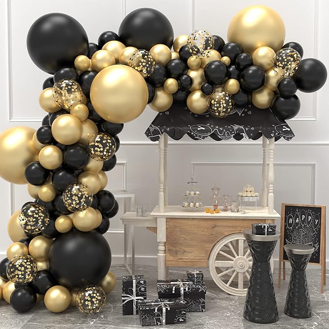 Cliente de EE. UU.: Los globos son de buena calidad. En esta foto utilicé globos dorados, rosas y negros de esta empresa.