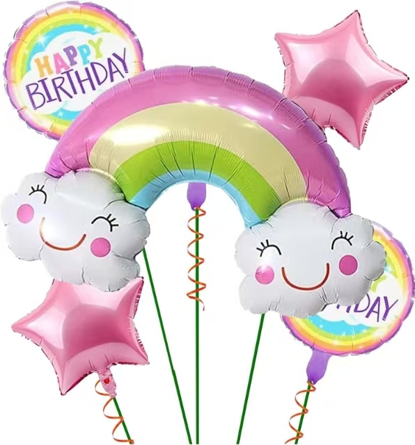 Este kit de globos de aluminio arcoíris también es uno de nuestros productos más vendidos. Este kit tiene una variedad de opciones para elegir, que se pueden combinar con globos de aluminio de arcoíris, globos de aluminio redondos y de estrellas, globos de aluminio con números y globos de látex. Si desea combinar diferentes kits de globos, podemos personalizar su propio kit de globos para usted. Y todos los kits de globos de nuestra fábrica implementan el precio de escalera; si compra kits de globos de aluminio arcoíris al por mayor, le ofreceremos precios más favorables. Las formas de arco iris y nubes crean un ambiente de fiesta único y memorable, y puedes usarlas en múltiples ocasiones, ahorrando tiempo y esfuerzo para crear diferentes estilos.
