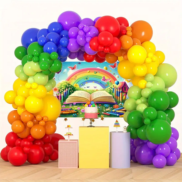 Este kit de guirnaldas de globos arcoíris está hecho de coloridos globos de látex. Los colores vibrantes lo hacen perfecto para decorar fiestas de cumpleaños infantiles. Los kits de guirnaldas de globos arcoíris personalizados están disponibles en una variedad de estilos. Puede personalizar su kit de guirnalda de globos arcoíris personalizado y ensamblarlo según el estilo que desee. Siéntete libre de crear tu propia forma única y experimentar con ella para que tu próximo evento sea un éxito total.