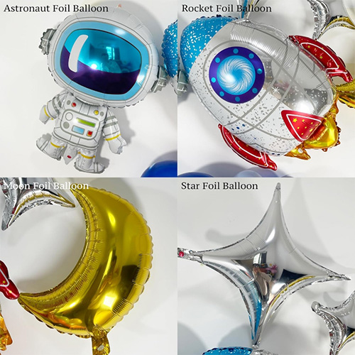 Los globos de aluminio tienen astronautas, cohetes, platillos voladores y otros estilos, que añaden mucho interés y realidad a esta guirnalda.