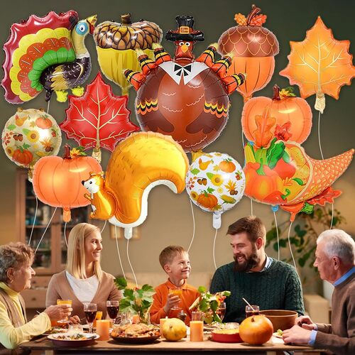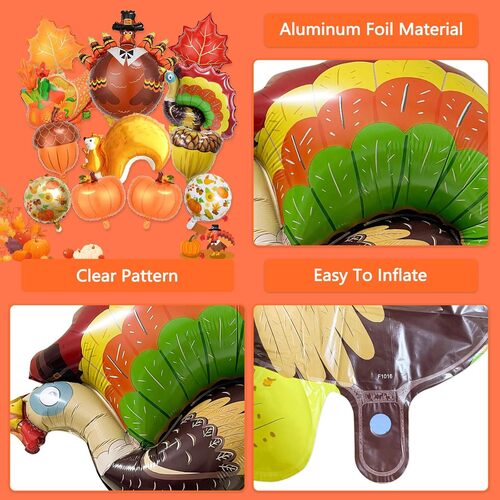 - Globos de aluminio de otros estilos (globos de aluminio redondos de Acción de Gracias y globos de aluminio con letras de Acción de Gracias) vienen en varios tamaños