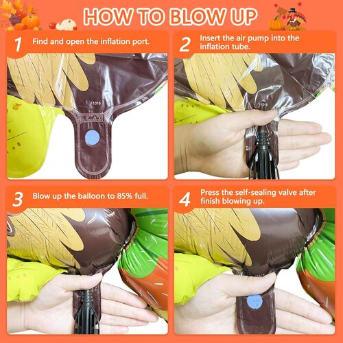 Los globos de aluminio de Acción de Gracias serán muy fáciles de inflar y sellar. Puedes usar una bomba manual o una bomba eléctrica para inflar y luego sellarlo con el pegamento autoadhesivo que se encuentra en la boquilla de cada globo. Una vez sellado, el globo se volverá fuerte.