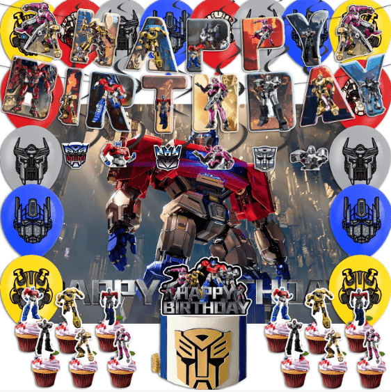 Combinación clásica: globo de aluminio Transformers con bandera temática de globo de látex de color, globo de látex como base, globo de aluminio como núcleo visual, bandera como decoración temática, adecuado para fiestas de cumpleaños, celebraciones de festivales de diseño básico.